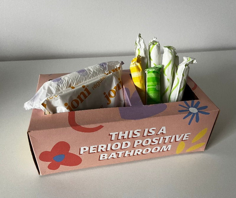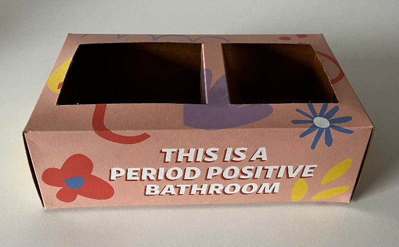 Compact and designed to fit on the back of a toilet or on a bathroom counter, Your Period Box makes period products accessible without shame.